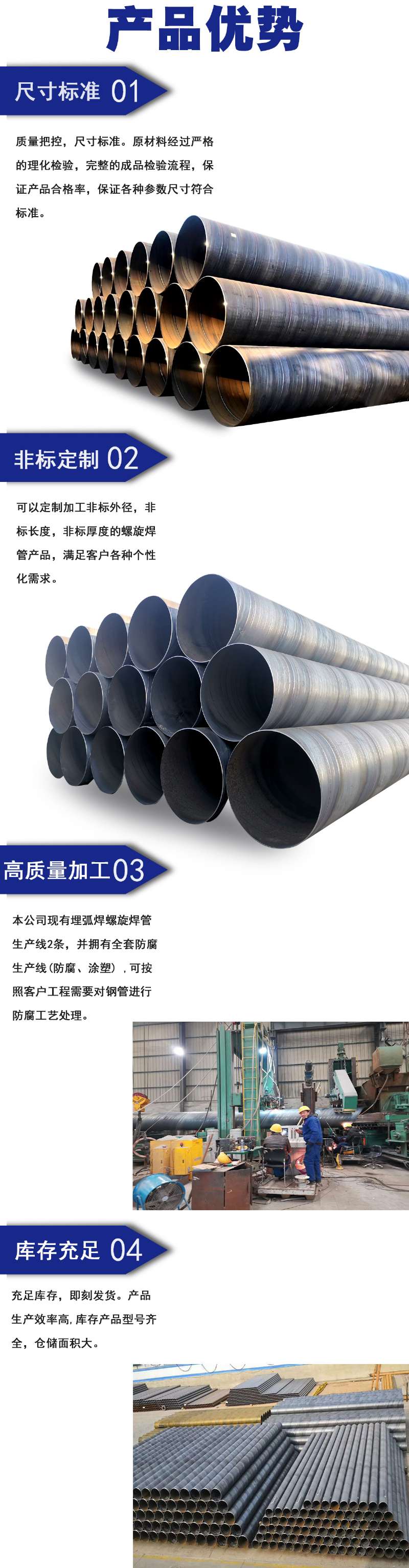 • 螺旋鋼管是以帶鋼卷板為原材料,經常溫擠壓成型,以自動雙絲雙面埋弧焊工藝焊接而成的螺旋縫鋼管。