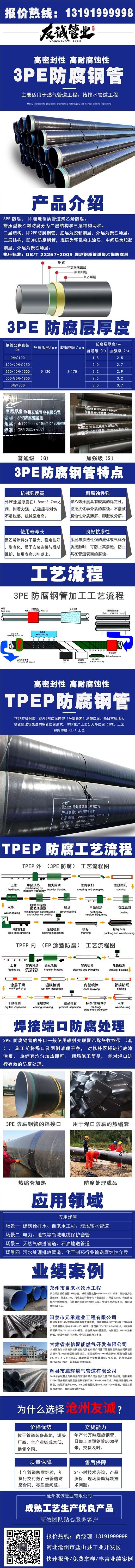 第一層環(huán)氧粉末(FBE>100um),第二層膠粘劑(AD)170~250um,第三層聚乙烯(PE)2.5~3.7mm。三種材料融為一體,并與鋼管牢固結合形成優(yōu)良的防腐層。